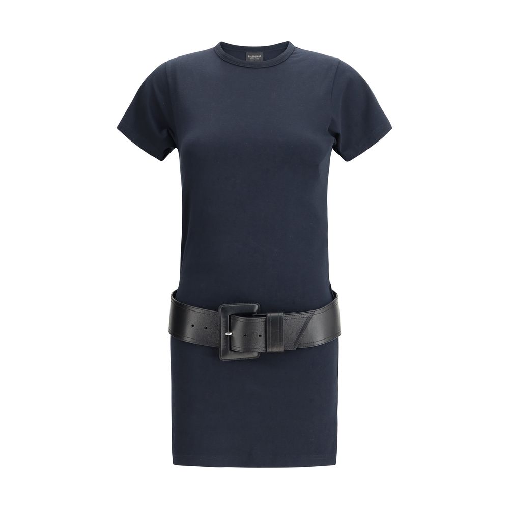 Balenciaga’s T-Shirt Dress combines a casual aesthetic with a distinctive structured design. Crafted with a ribbed crew neck and short sleeves, it is enhanced by waist loops that accommodate a matching, adjustable and removable leather maxi belt. A bold and contemporary piece that sculpts the silhouette while maintaining a casual spirit.