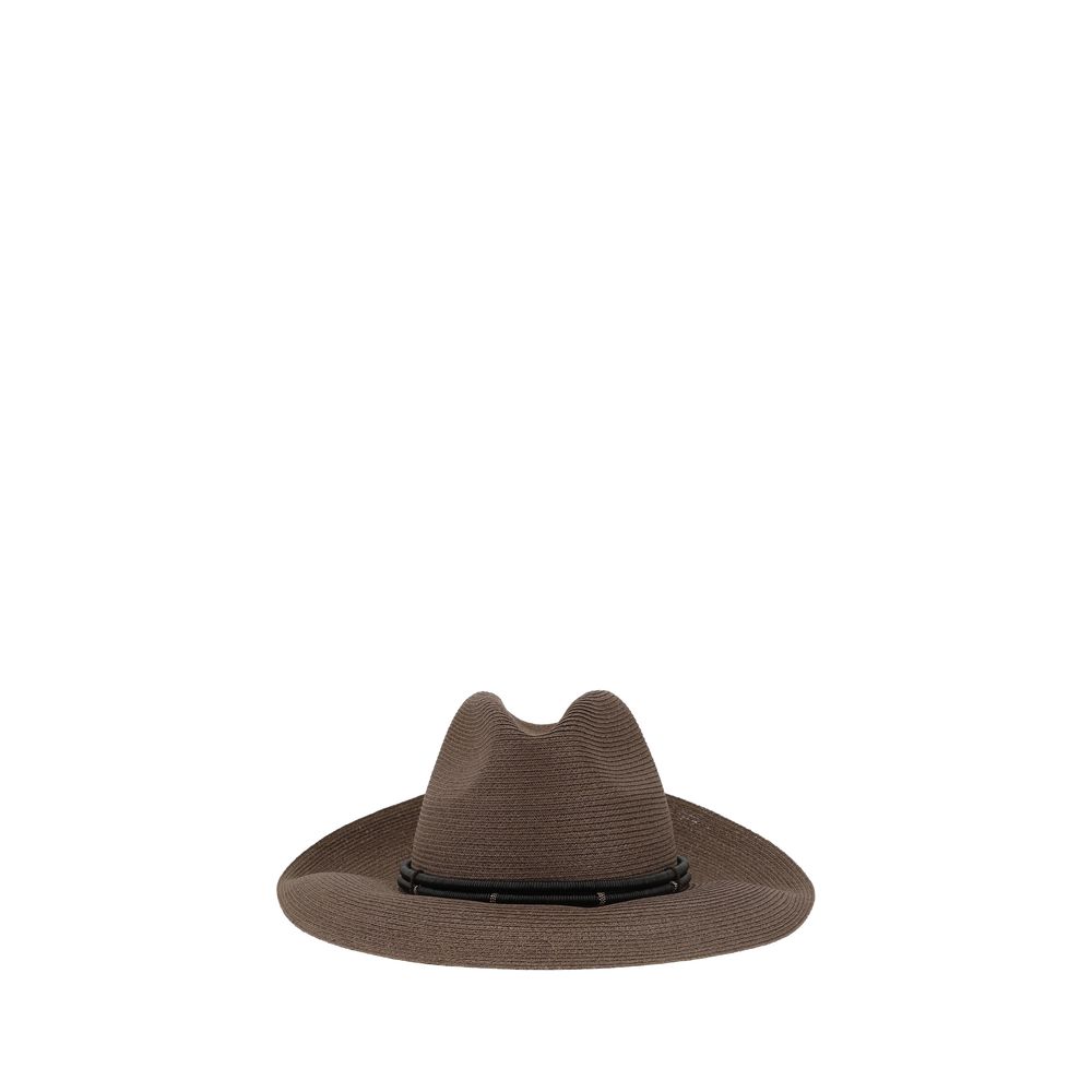 Fedora made of hemp and techno cotton by Brunello Cucinelli, with a leather band and iconic shiny beads that add a touch of elegance and light to the design. A hat with a sophisticated and modern style, perfect for completing a classy look with refined details and high-quality materials.