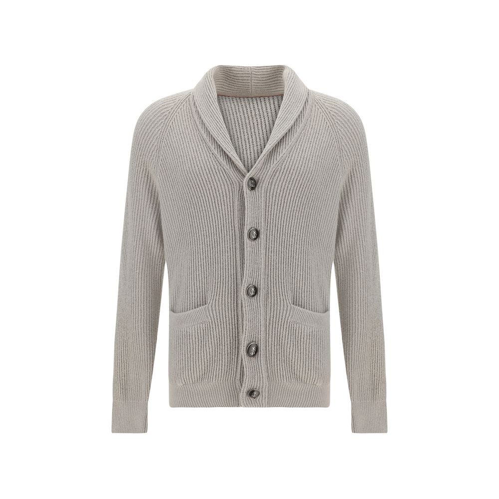 Brunello Cucinelli’s cotton Cardigan is an elegant and versatile piece, featuring a shawl lapel that adds sophistication. The front button closure, enhanced by the brand’s engraved logo detail, lends a distinctive touch. The two welt pockets on the front offer functionality and practicality, while the ribbed cuffs and hem ensure a snug, comfortable fit. The all-over repeated ribbed design adds texture and movement to the garment.