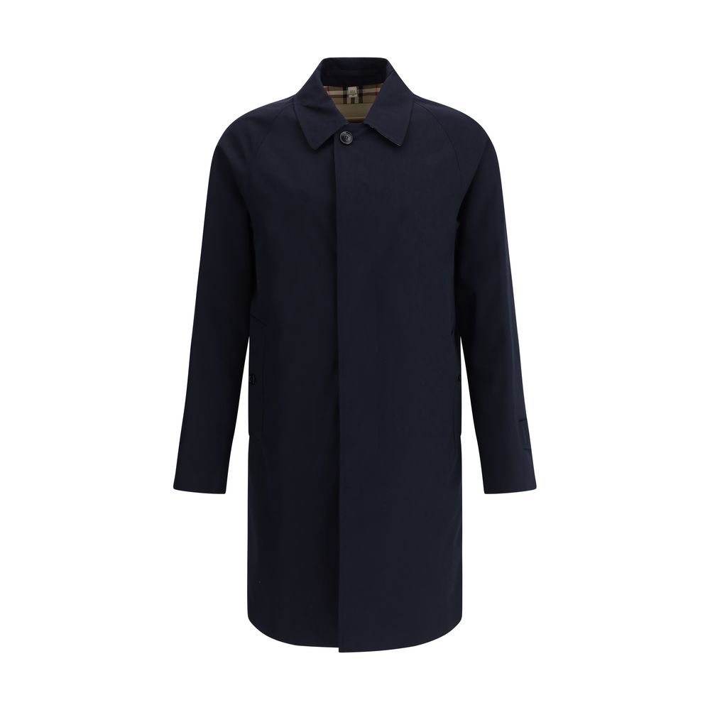 Cotton Camden Coat by Burberry featuring a classic collar, a front button-flap closure, two side welt pockets, adjustable button cuffs, a back vent, the brand’s iconic Archivio Check patterned lining, and a regular fit.