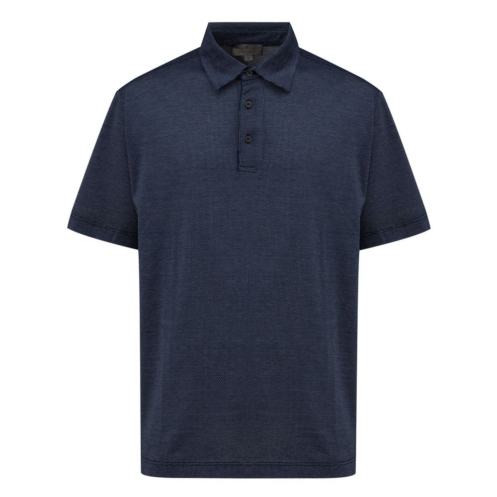 Polo Canali short sleeve blue 3 buttons cotton piquet fabric