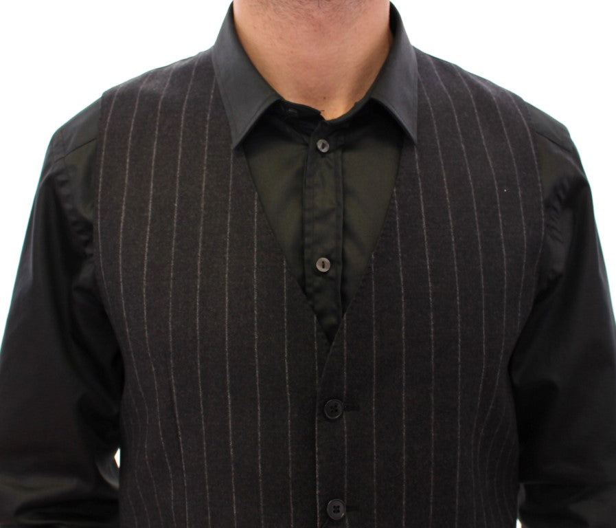 Exude elegance with Dolce & Gabbana’s stunning, 100% Authentic new Gray striped Dress Vest. A perfect blend of sophistication and style, this vest is an ideal choice for those who appreciate the luxury and quality of MainLine Dolce & Gabbana collections.