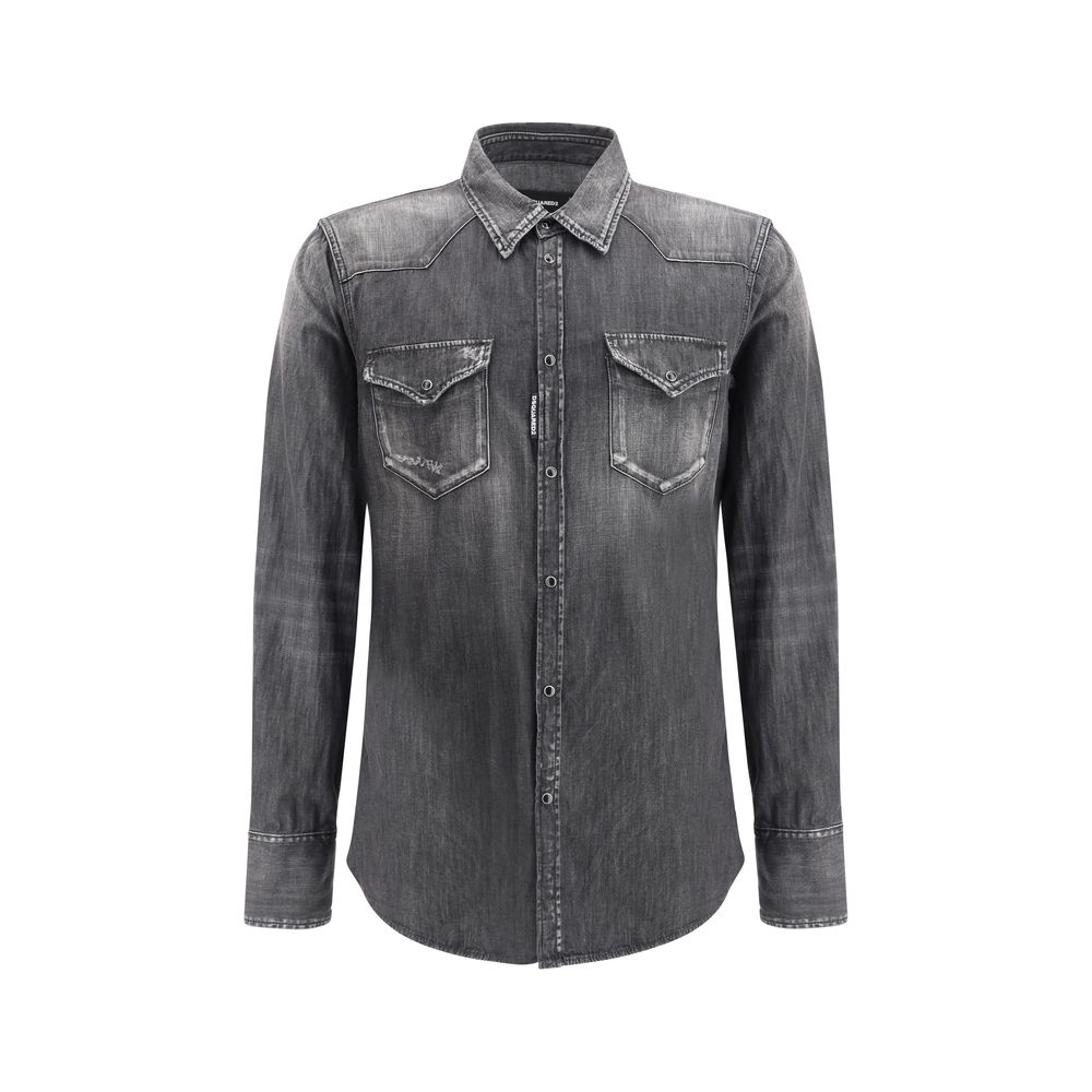 Cotton Classic Western Shirt by Dsquared2 featuring a classic collar, a front button closure, two welt flap pockets applied to the front, adjustable button cuffs, a mélange pattern, and a regular fit.