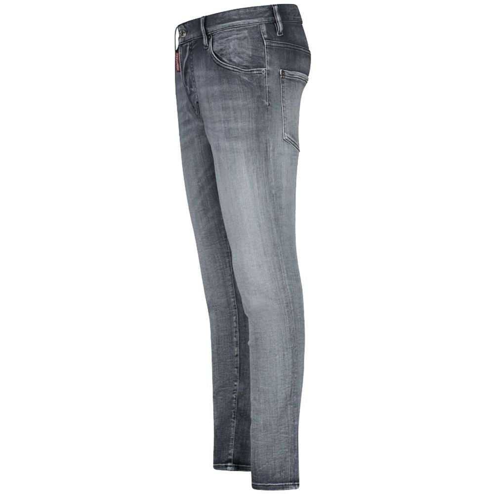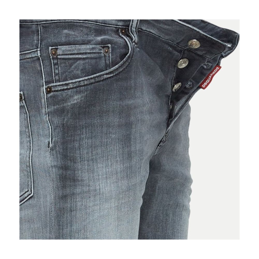 Dsquared2 five-pocket Skater jeans in grey cotton, washed and stretch fabric, button fastening, black leather patch with logo on the back