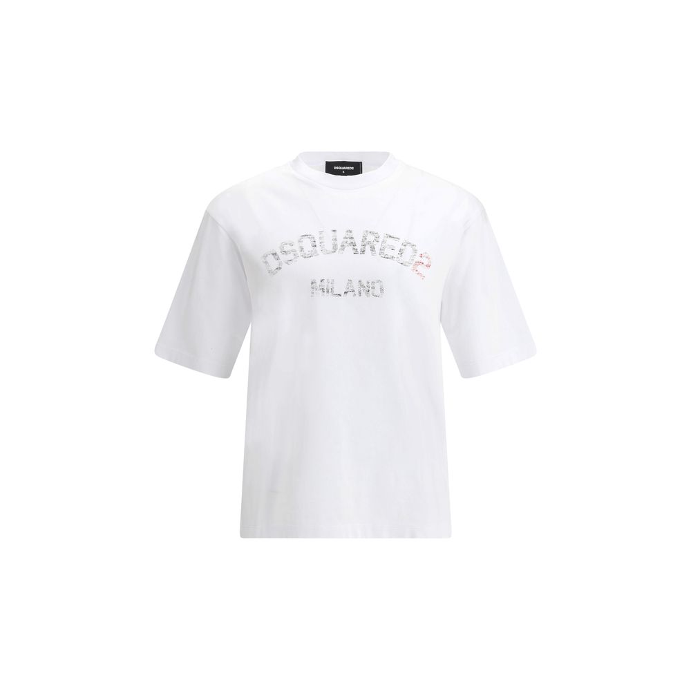 Cotton T-Shirt by Dsquared2, ribbed crew neck, iconic brand monogram printed on front, monochrome pattern, oversize fit.