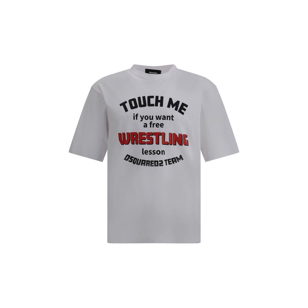 The Dsquared2 cotton T-Shirt is a modern piece with a strong character. The ribbed crew neck offers a comfortable and refined fit, while the front features a maxi writing that captures attention, accompanied by the iconic monogram of the brand, which adds a touch of recognisability and style.