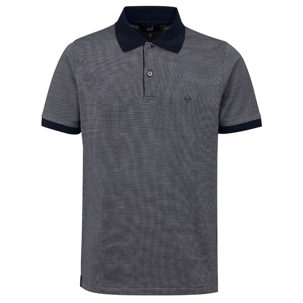 Dunhill Blue Cotton and Silk Polo. In jacquard print fabric, front button fastening, blue knit collar, small tone-on-tone logo embroidered on the side. Regular fit