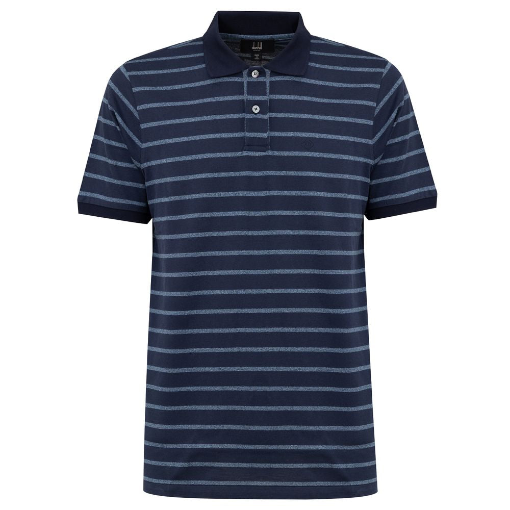 Dunhill Cotton Striped Blue Polo. Soft blue/light blue striped cotton, blue knitted collar, button fastening, small side vents. Regular fit
