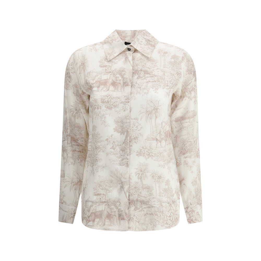 Ella’s Silk Shirt is an elegant and refined garment, characterized by its classic collar and front closure with hidden buttons, enhancing its clean and sophisticated silhouette. The toile de jouy print, with its delicate vintage patterns, adds a touch of timeless style, making it perfect for creating elegant looks but also for adding an accent of originality to a more casual outfit.