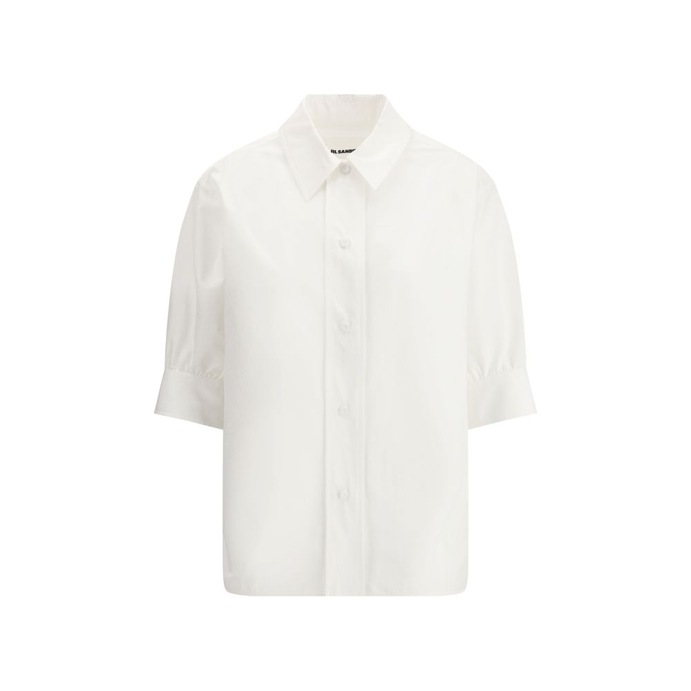 Cotton 77 Ss Shirt by Jil Sander featuring classic collar, short balloon sleeves, front button closure