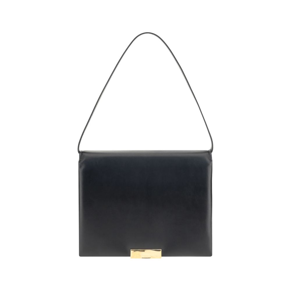 The Carnet medium Shoulder Bag by Jil Sander is a stylish and functional accessory. It features a flat shoulder strap for comfort, while soft side gussets add a touch of sophistication. The front flap closure and golden engraved Jil Sander logo detail enrich the design, making the bag even more distinctive. With three interior compartments, it offers space and organization for everything you need while maintaining a sophisticated, minimalist look.