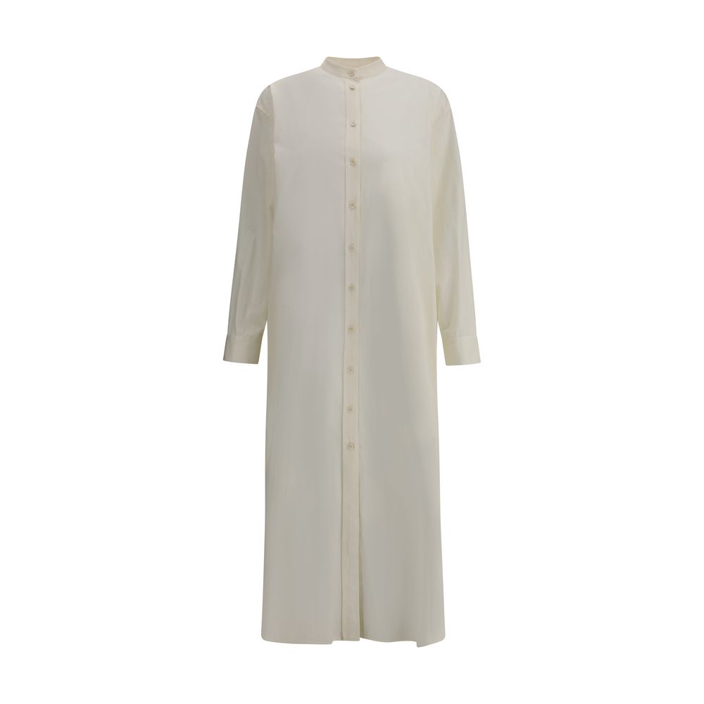 The Jil Sander long shirt Dress is a garment that expresses minimalist elegance and modernity. The collarless design gives a clean and sophisticated look, while the front button closure maintains the classic and functional structure. The two side slits add movement and dynamism to the model, without compromising its refined line. The iconic embroidered logo on the front adds a discreet touch of recognition, emphasizing the quality and authenticity of the brand. A versatile and sophisticated dress, perfect for elegant occasions or for an everyday look with a touch of luxury.