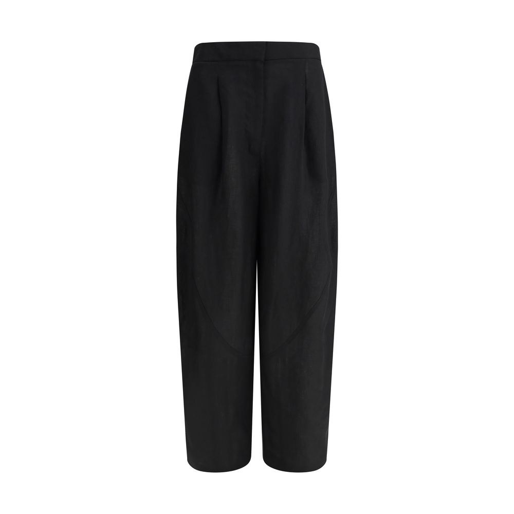 Lardini’s Linen Pants offer the perfect blend of comfort and elegant style. The front zip and hook fastening ensures a secure fit, while the elasticated waistband at the back adds practicality and adaptability. The two side welt pockets and patch pockets at the back add functionality to the design without compromising aesthetics. The balloon design creates a unique silhouette, giving a soft and fluid effect at the top of the leg for a modern and relaxed look. These trousers are ideal for those looking for a versatile and sophisticated piece for the summer or spring season.