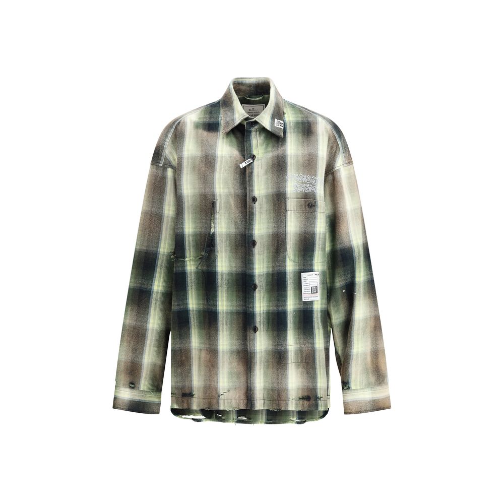 Maison Mihara Yasuhiro’s cotton Shirt combines the elegance of vintage design with a modern twist. With a classic collar and front button closure, it features a patch welt pocket and distinctive monogram patch on the front. Adjustable button cuffs and embroidered lettering on the front and back enhance the garment with unique details. The vintage worn-effect design and patent patches lend a bold character, while the oversized fit ensures comfort and contemporary style.