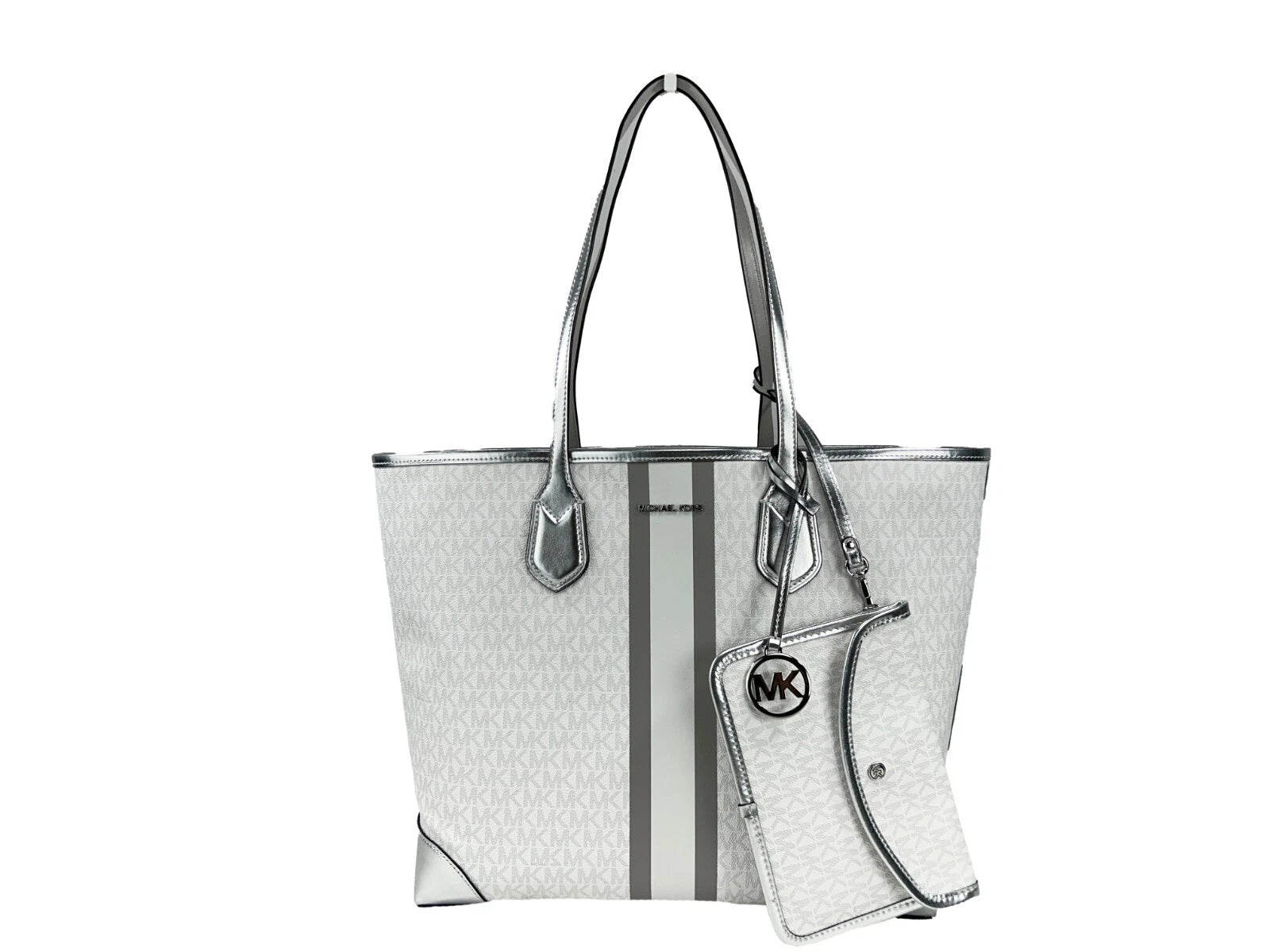Features: Removable Pouch, Center Stripe, Double Handles, MK Charm