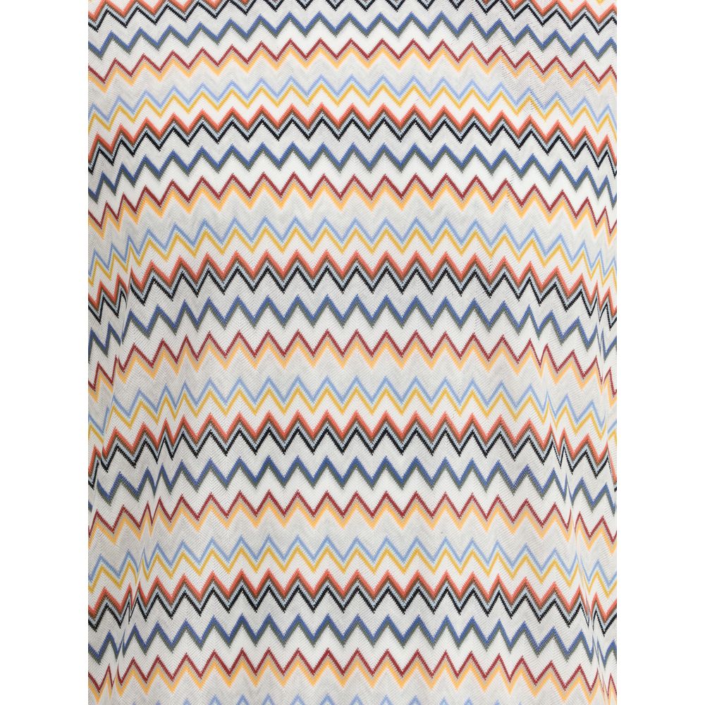 Missoni’s knit T-Shirt combines comfort and style with its refined workmanship. The ribbed crew neck and hems lend structure to the garment, while the ZigZag pattern on the front panel adds a distinctive and dynamic touch, an authentic expression of the Missoni aesthetic.