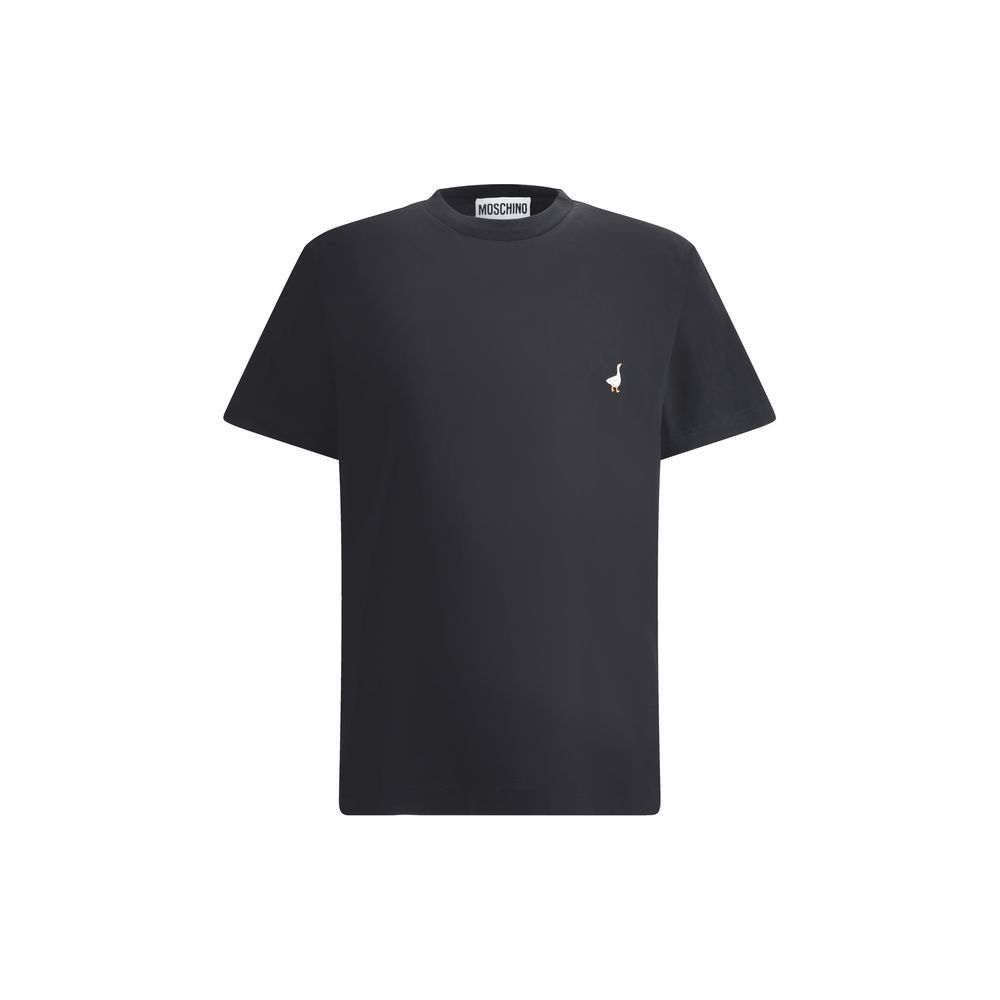 Moschino’s Cotton Logo T-Shirt features a classic ribbed crew neck, adding comfort and style. On the front, a contrasting stitched mini goose lends a distinctive and playful touch to the design. On the back, the brand’s iconic monogram is printed in contrast, creating a recognizable and bold detail. A casual garment but with a unique character.