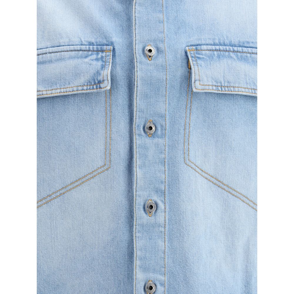 Off-White’s Fresco Denim Shirt combines urban design with distinctive details. Featuring a classic collar and front button closure, it has two patch pockets on the front for a practical touch. The brand’s iconic logo, stitched on the back and sleeves, signs the garment with Off-White’s unmistakable streetwear aesthetic.