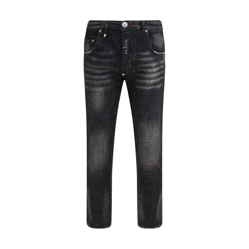 Philipp Plein’s Cotton Jeans are a bold, modern garment made from high-quality cotton. They feature a five-pocket skinny style that offers a straight and comfortable fit, perfect for a casual and versatile look. The front button closure lends a distinctive touch, while belt loops on the waistband allow you to customize the fit. On the back, the iconic logo patch stands out, while on the front we find an iconic monogram patch, adding a detail of luxury and recognition to the design.
