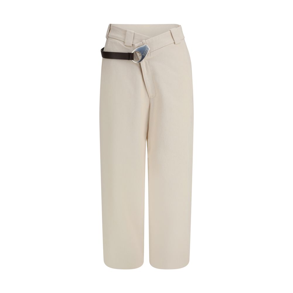 Pinko’s Crossed Pants combine originality and style in a distinctive design. Featuring a crisscross button closure and a fixed half-belt at the waist, they are embellished with a geometric satin logo-engraved buckle. Two side welt pockets and two on the back complete the design for a sophisticated and contemporary look.