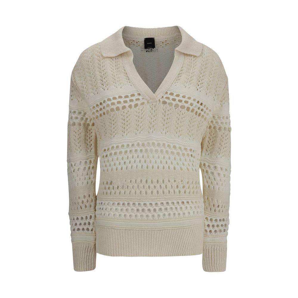 Pinko’s Sweater is a refined and versatile garment that combines comfort and style. The classic ribbed collar and V-neck create an elegant and feminine silhouette, while the ribbed hem and cuffs ensure a comfortable and structured fit. The perforated design adds a light and airy texture to the garment, making it ideal for transitional seasons or for a more sophisticated look during the day.