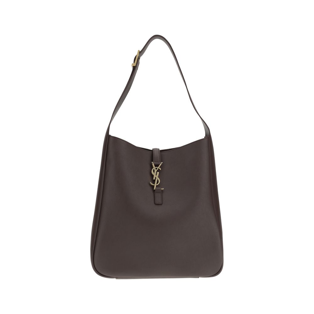 Saint Laurent’s leather Le 5 À 7 Shoulder Bag features a sleek grained leather design, giving it a refined and durable texture. It features a single flat top handle that is adjustable for optimal comfort. The closure is secured by a hook-and-eye flap, decorated with the iconic YSL logo on the front, which adds a distinctive touch to the design. Inside, the bag offers a single compartment with a suede lining that houses a slit pocket and a zipper pocket for better organization of personal belongings. A perfect blend of functionality and timeless luxury.