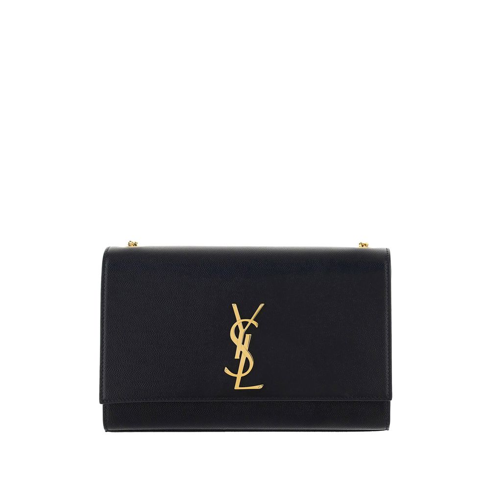 Monogram Leather Shoulder Bag by Saint Laurent, golden brand logo on front, magnetic flap closure, interior open pocket with brand logo label.