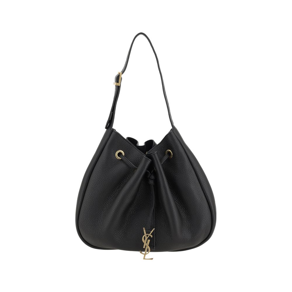 The Paris II Leather Shoulder Bag by Saint Laurent is an elegant and functional accessory perfect for those seeking a mix of sophistication and practicality. Featuring an adjustable flat shoulder strap, this bag offers optimal comfort for everyday use. The top, drawstring closure adds a distinctive and secure element, while the interior consists of a single compartment, enhanced by a removable pouch that allows you to better organize your items. The iconic three-dimensional YSL plaque applied to the front adds a touch of class, making the bag easily recognizable.