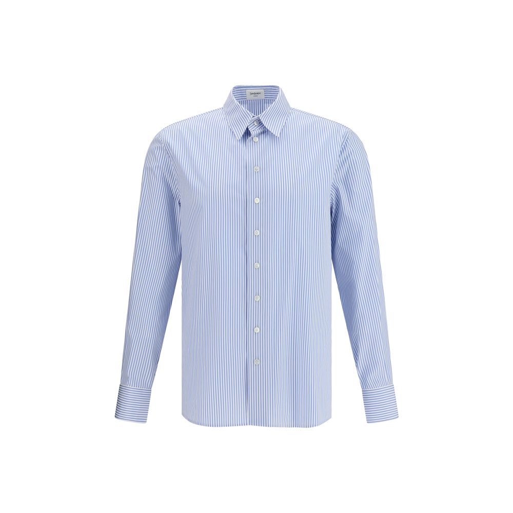 The Saint Laurent Cotton Shirt is a classic and versatile garment made from soft, high-quality cotton. It features a classic collar that gives it an elegant and sophisticated look. The front closure is buttoned, while the cuffs are adjustable via a small button, allowing for a comfortable and customizable fit. The subtle striped design adds a modern and refined touch, making it ideal for wearing both on formal occasions and in more casual settings. Perfect for those seeking an elegant style that is at the same time easy to match.