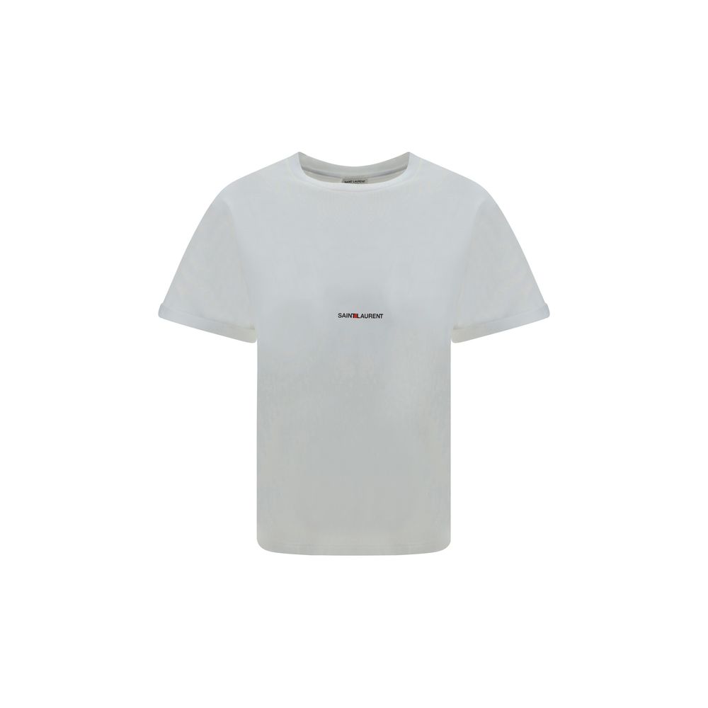 Cotton T-Shirt by Saint Laurent, ribbed crew neck, iconic brand monogram printed in contrast at front, regular fit.