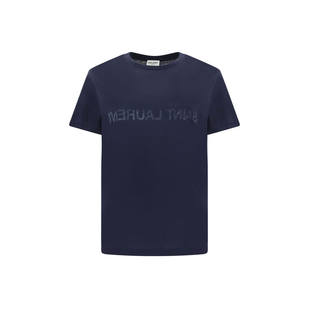 Cotton T-Shirt by Saint Laurent, ribbed crew neck, iconic brand monogram in contrast on front and back, regular fit.