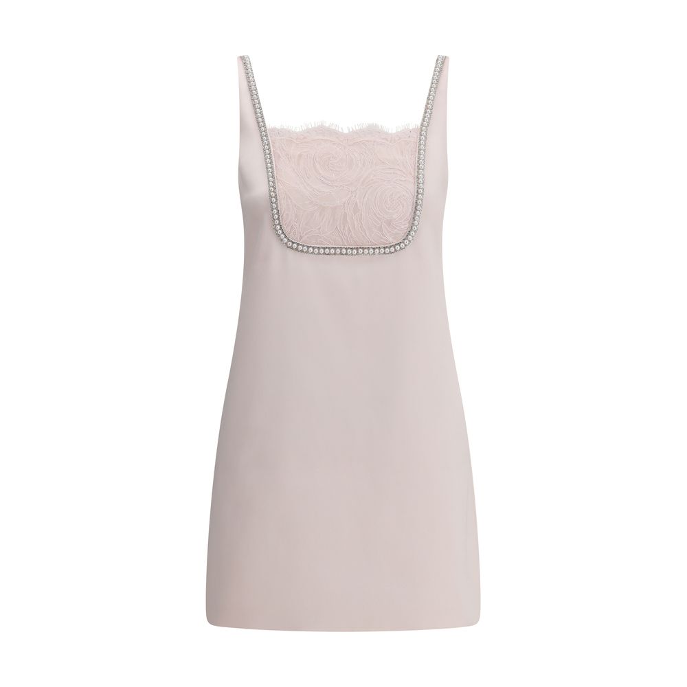 Mini dress by Self-Portrait with an elegant and feminine design. Sleeveless model with slim fit that enhances the silhouette. The front is embellished with applications of bright jewels and pearls, also present on the straps, and a lace insert that gives a romantic touch. Zipper closure on the back panel for a clean and sophisticated line. Ideal for evening events and special occasions.