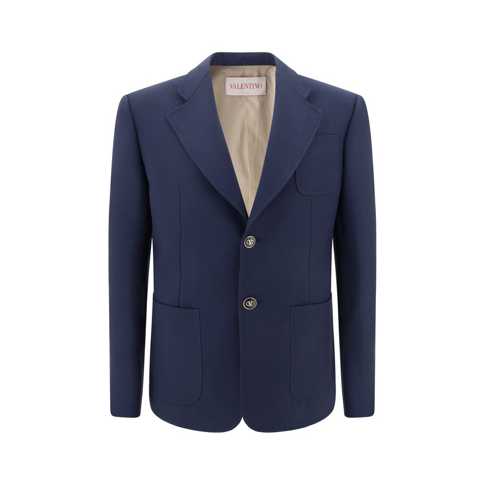 Valentino’s Virgin Wool Blazer Jacket features a single-breasted closure with contrasting buttons, giving it an elegant and distinctive touch. Peaked lapels add sophistication to the design, while two front patch welt pockets and a slit breast pocket complete the look with practicality and style. Two slits at the back provide freedom of movement, making this jacket a sophisticated and versatile garment, ideal for a formal or elegant look.