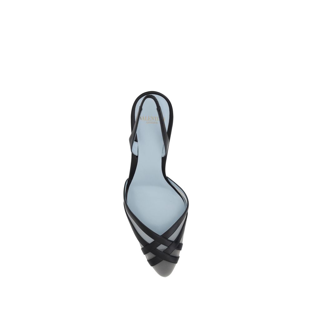 Valentino Garavani’s leather Pumps are a pair of elegant and sophisticated shoes, perfect for adding a touch of class to any outfit. The almond toe gives a refined and slender shape, while the details in crossed leather with semi-transparent fabric create an elegant and modern contrast. The leather stiletto heel offers a touch of femininity and elongates the figure, while the logo insole adds a distinctive detail of the brand. The elasticated slingback guarantees a comfortable and secure fit, allowing you to wear them easily without sacrificing style.