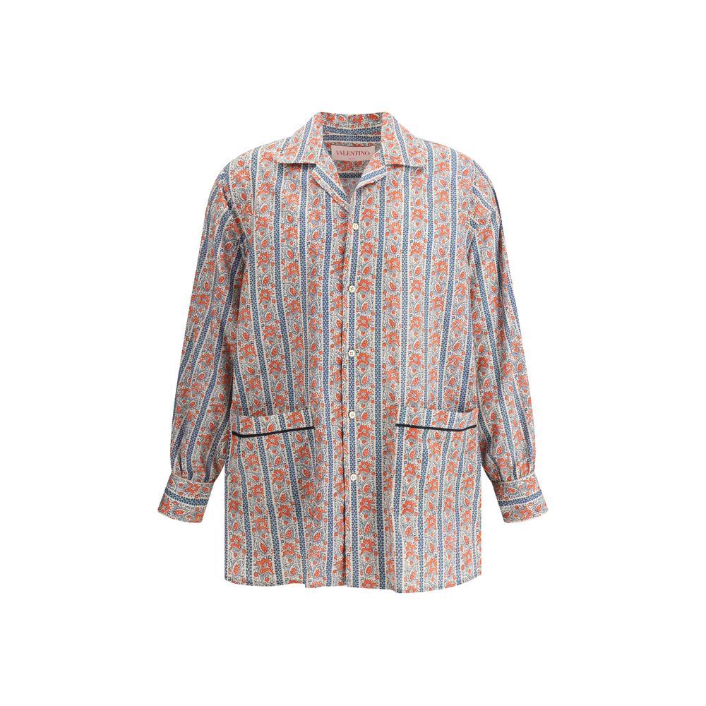 Valentino Garavani’s cotton Shirt features classic lapels and a front button closure for a sleek, understated look. Two patch welt pockets on the front add practicality, while adjustable button cuffs offer a customizable fit. The multicolored, all-over repeated paisley pattern lends a distinctive and vibrant touch, making this shirt a sophisticated and on-trend piece.