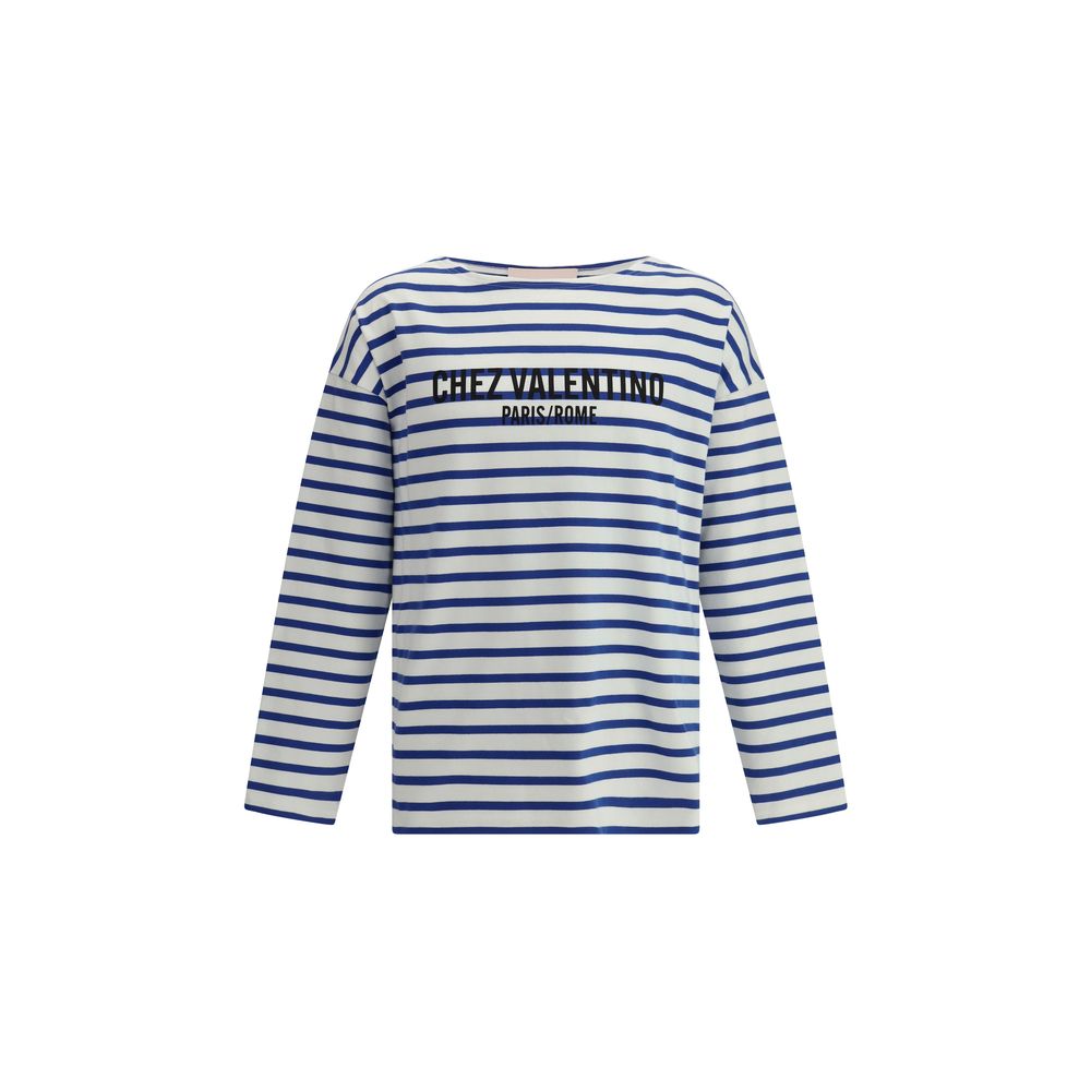 Valentino’s striped T-shirt is a fresh and stylish piece, perfect for those seeking a casual yet sophisticated look. The boat neck lends a touch of elegance and sophistication, while the all-over stripe pattern gives the design an attention-grabbing vibrancy. The brand’s iconic contrasting printed logo on the front adds a distinctive, easily recognizable detail
