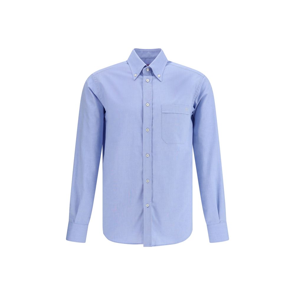 The Valentino Garavani cotton Shirt is an elegant and sophisticated piece. It features a classic collar and a front button closure that emphasizes its formal style. The adjustable cuffs with a small button allow for a customizable fit. On the front, a patch slit pocket is enriched by the embroidered VLogo detail, adding a distinctive and modern touch to the design. A versatile piece that combines tradition and innovation.